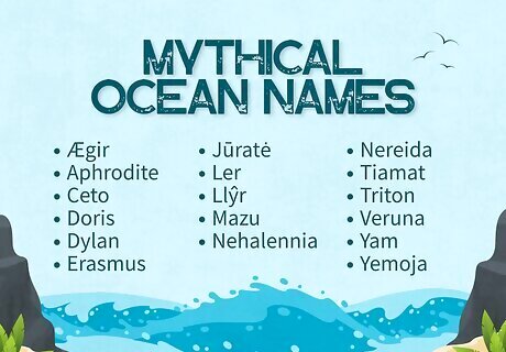 Get inspiration from your favorite ocean myth. A good ocean name doesn’t have to mean “sea” or “ocean” specifically. Baby naming expert and content creator Sonya Prior also recommends checking out names that are connected to mythological sea figures; there may even be some "normal" names you didn't realize were connected to ocean mythology, like Dylan! Here are some of our favorites: Ægir (Norse god of the sea) Amphitrite (Greek sea goddess and wife of Poseidon) Aphrodite (Greek goddess of love and beauty, born from the sea foam) Ceto (Greek goddess of sea monsters) Doris (Greek Oceanid nymph) Dylan (Welsh sea god, name meaning “great tide”) Erasmus (Greek patron saint of sailors) Jūratė (Lithuanian sea goddess) Ler (Irish sea god) Llŷr (Welsh sea deity) Mazu (Chinese sea goddess) Nehalennia (German goddess of the North Sea) Neptune (Roman god of the sea) Nereida (daughter of the Greek sea god Nereus) Nixie (German for “water nymph”) Tiamat (Mesopotamian sea goddess) Triton (son of the Greek sea god Poseidon) Veruna (Hindu god of the ocean and water) Yam (Canaanite god of the sea) Yemoja (Mother of fish in Yoruba mythology) These mythical names also work great if you’re naming a mermaid or merman character!