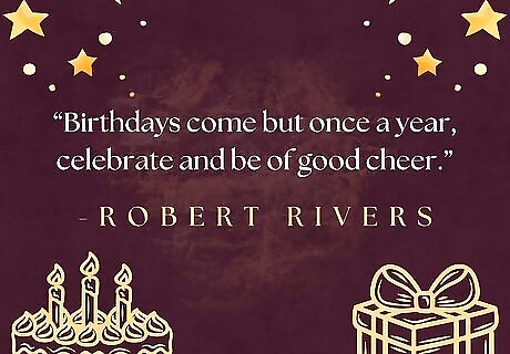 Share a famous quote to spread birthday cheer and positive vibes. Struggling to find the right sentiments? Get help from someone else! Choose an author, celebrity, or public figure that the birthday boy or girl admires, then use their words to say happy birthday. Here are some sweet, silly, and festive options: “Who says we have to grow up?” — Walt Disney “You don’t get older, you get better.” — Shirley Bassey “Every birthday is a gift. Every day is a gift.” — Aretha Franklin “We turn not older with years, but newer every day.” — Emily Dickinson “Learn from yesterday, live for today, hope for tomorrow.” — Albert Einstein “The best birthdays of all are those that haven’t arrived yet.” — Robert Orben “The older you get the better you get, unless you are a banana.” — Betty White “Whatever with the past has gone, the best is always yet to come.” — Lucy Larcom “You are never too old to set another goal or to dream a new dream.” — Les Brown “Birthdays come but once a year, celebrate and be of good cheer.” — Robert Rivers “From our birthday, until we die, is but the winking of an eye.” — William Butler Yeats “As soon as I saw you I knew a grand adventure was about to happen.” — A.A. Milne “We grow neither better nor worse as we get old, but more like ourselves.” — Bernard Baruch “Count your age by friends, not years. Count your life by smiles, not tears.” — John Lennon “The secret of staying young is to live honestly, eat slowly, and lie about your age.” — Lucille Ball “We grow neither better nor worse as we get old, but more like ourselves.” — Bernard Baruch “The more you praise and celebrate your life, the more there is in life to celebrate.” — Oprah Winfrey “Today is the oldest you have been and the youngest you will ever be again. Make the most of it!” — Nicky Gumbel “Live the full life of the mind, exhilarated by new ideas, intoxicated by the romance of the unusual.” — Ernest Hemingway “Let us never know what old age is. Let us know the happiness time brings, not count the years.” — Decimus Magnus Ausonius