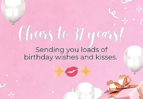 Send a short and sweet message to share your well-wishes. Whether you’re writing a card, sending a text, or saying your wish in person, it’s easy to make the birthday boy or girl feel special on their big day. Just let them know you’re thinking about them and express excitement for their new personal year! Happy cake day! ✨????✨ Go wild! It’s your birthday! You make 37 look spectacular! Hope your 37th birthday rocks! Cheers to 37 laps around the sun! Thirty-seven never looked so good! For the 37th time… Happy birthday! Hip, hip, hooray—it’s your birthday! ???? Today’s forecast: 100% chance of birthday fun! Happy birthday! I hope all your dreams come true! Thinking of you today. Have the best birthday ever! Time to make some wishes! Happy, happy birthday to you! Sending you warm wishes for a birthday that brings you joy! ???? Happy 37th birthday to the most wise and wonderful person I know!