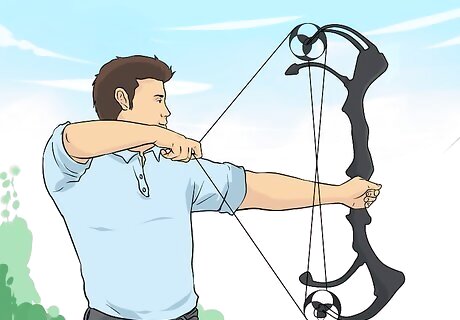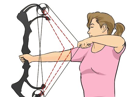 Identify where the draw feels heaviest. As you pull back the bowstring, make a note of at what point you encounter the most resistance. The bow will normally have the highest amount of tension right before you reach the wall. If it starts getting hard in the middle of the draw or sooner, the limb bolts may need to be loosed just slightly. Similarly, if the draw feels too fast or easy, tightening the limb bolts will result in a more forceful release. Your draw should be one fluid movement, and the bowstring should not slow down at any point during the pull.