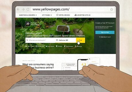 Claim your business listing on Yellow Pages. Go to the website and enter your company or business name along with your contact information. The Yellow Pages will contact you to verify that the information is correct. This process might not sound helpful, but it means that search engines will be able to find your business or company much easier. Find the site here: https://www.yellowpages.com/. Remember to check the fine print so you don't accidentally sign up for paid advertising.