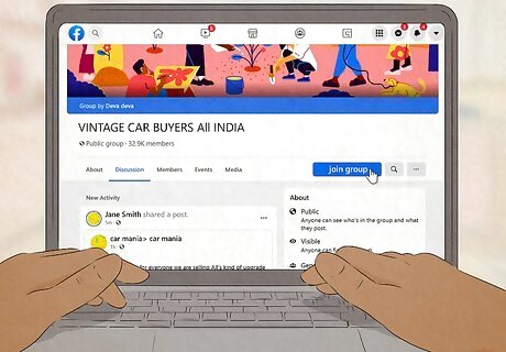 Do a keyword search on a social media site for what you're advertising. Don't forget to include your location in the search so you get results in your area. You'll need to register a personal account so you can comment, but then you can interact with a local audience. Not only can you share your business or company information, but you can get to know potential clients and answer questions they might have. For instance, if you restore classic cars, you might join a Facebook group that finds or sells vintage cars. Use a memorable hashtag! Come up with a hashtag that mentions your business or event and use it when you comment on other users' posts. This is a great way to get people curious and talking about your product or event.