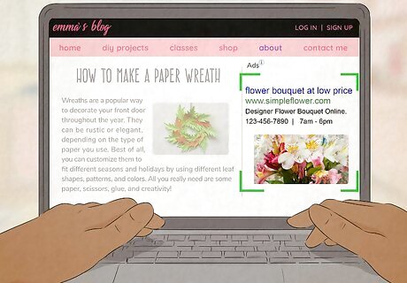 Use a free website to make an ad that promotes your product or service. When it comes to effective advertising, simple is better! Your audience should be able to glance at the ad and immediately tell what it's promoting. Don't forget to include the name of the product or your business along with important info like your phone number, business address, or website. You can find lots of free ad creators like Creatopy, Canva, and Lucidpress. For instance, if you have a flower shop, use a single bouquet or flower for your ad instead of a stock photo of a couple. Put the name of your store, its hours, and the shop's phone number.