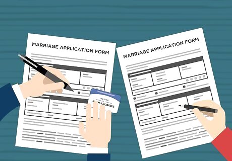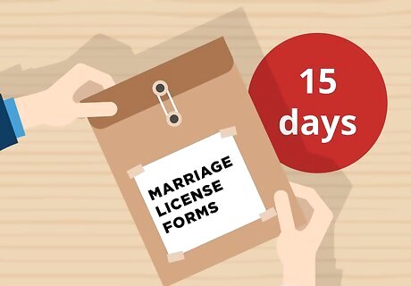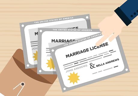 Turn over all three copies of the marriage license to your wedding official. Prior to the wedding, turn over the marriage license to your wedding official. An experienced official should be familiar with the forms and the license process.