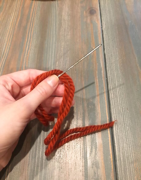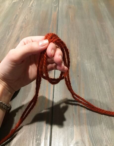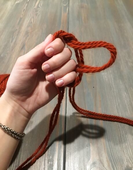 Pull the tail yarn through the loop, and pull tight to finish the knot leaving a loop at the top.