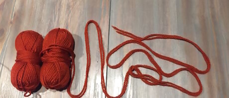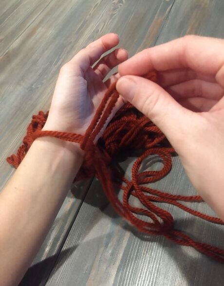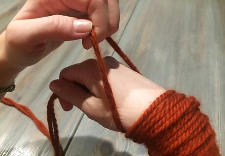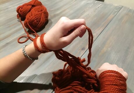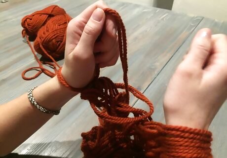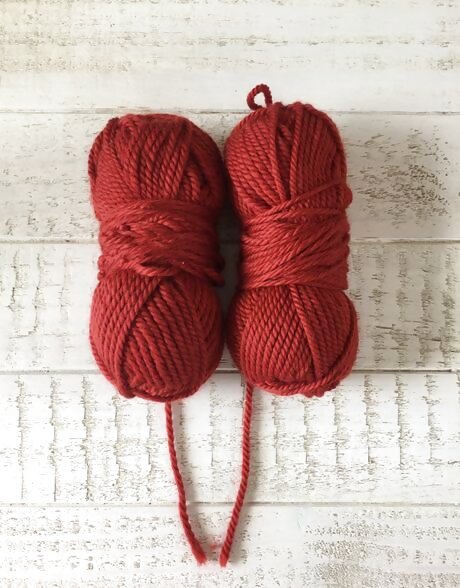 Start with two skeins of yarn, and find the ends. These two skeins should be treated as if they were one, so make sure the two ends line up. Before you start, make sure the yarn can unfurl from the skeins easily.