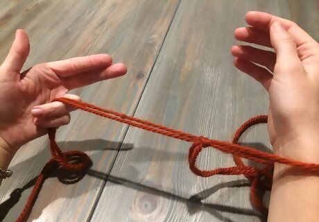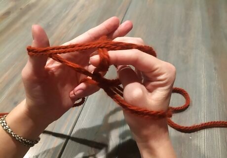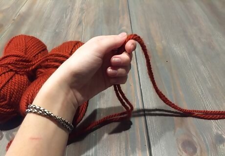 Wrap your thumb over and under the working yarn. The yarn should be wrapped around your thumb and held between your bottom two fingers.
