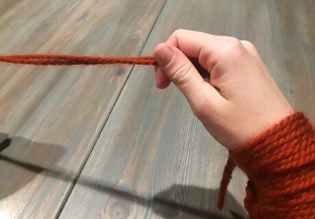 Take your index and middle finger of your left hand and grab the tail yarn between your two fingers.