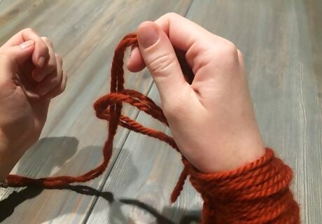 Start the slipknot by holding the working yarn in your left hand so that your palm is facing you.
