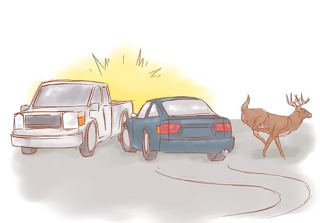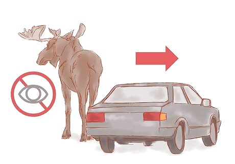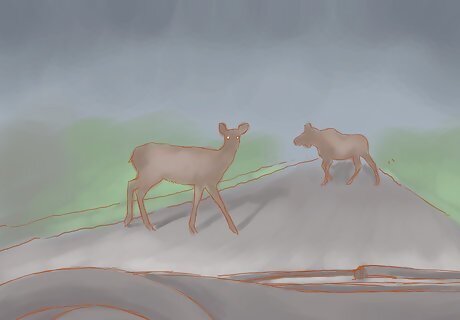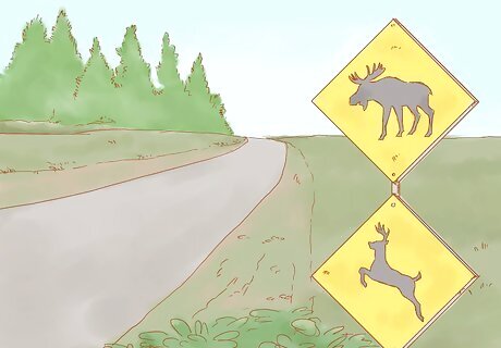 Be especially wary at sunset and sunrise. Deer and moose seem to move most in the hours around sunset to midnight and again around dawn. These are also the hardest times for our eyes to adjust to the light because it's neither completely dark nor properly light, so we find it more difficult to see well. If you don't feel alert or can't see properly at these times, save your trip for another time. Be on the lookout -- if you see one deer or moose, there are likely to be more deer or moose nearby, even if you don't see them. If you see one creature, it's more likely that you'll run into more.