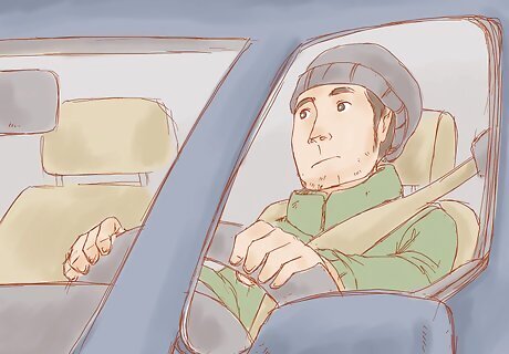 Drive defensively. Be prepared to take evasive action, which includes being able to quickly slow down, brake suddenly or turn down blinding headlights. Drive so that you are able to stop within the space of your headlights; practice this in a safe area if you don't know how fast this is for your vehicle. Make sure your seat belt is on and check that all passengers are wearing theirs as well. A sudden lurch could have people catapulting from the car.