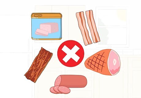 Avoid processed meats. Like red meat, processed meats are high in animal fat, which means they increase your cancer risk. Unfortunately, processed meats increase your risks even more than red meat. It’s best to cut them out of your diet. Examples of processed meats include bacon, ham, salami, corned beef, beef jerky, and canned meats.