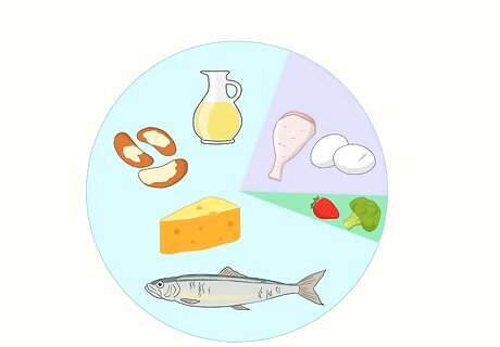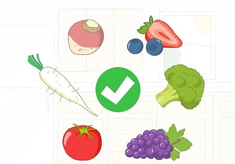 Build your meals around fresh produce, beans, nuts, and whole grains. Vegetables and fruit are the best foods for your body. They’re packed with nutrients and fiber, plus they’re often lower in calories and fat. The antioxidants in fruits and vegetables can help repair damaged cells. A plant-based diet is the best for cancer prevention, but you can include meat in moderation if you prefer it. Remember that eating a healthy diet may help prevent cancer, but it's not a guarantee that you won't get cancer. Fill at least half your plate with vegetables. Use a quarter of the plate for whole grains or starchy vegetables. Then, include a serving of lean protein, such as turkey, chicken, fish, beans, or legumes, with every meal.