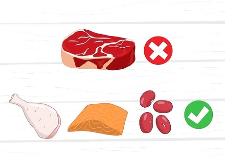 Limit your consumption of red meats. Eating red meat can increase your risk of colon and prostate cancers. Instead, get your protein from lean cuts of meat and plant-based sources, such as turkey, chicken, fish, beans, and legumes. If you really enjoy red meat, consume it just once or twice a week.