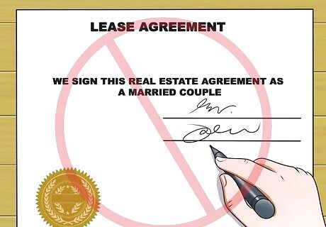 Understand how you should sign a lease agreement, purchase and sale agreement, deed, or mortgage. When you and your significant other decide to live with each other, you both need to make sure you do not sign any document as husband and wife. In order to make sure you are not living together as husband and wife, never sign a real estate agreement that contains the following language: "Husband and wife." "Mr. and Mrs. [followed by one of your last names]." "We sign this real estate agreement as a married couple."