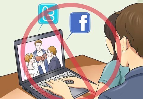 Watch how you and your significant other act on social media. You and your partner should not claim you are married on sites such as Twitter, Facebook, Instagram, or Snapchat. Doing so may be enough for you to be holding yourself out as married. For example: Do not create a relationship status on Facebook that says "married." Do not post a photograph on Instagram of you and your significant other with a caption that says "married" or anything else that could be construed that way. Do not tweet anything on Twitter that states you are married or that you are with your spouse.
