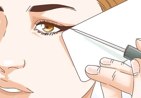 Use a guide to flick your eyeliner. Getting the perfect wing on the end of your eyeliner can seem like mission impossible if you try to freehand it. Instead, place a piece of invisible tape or hold a small piece of paper at a 45 degree angle at the corner of your eye so you can just trace your flick along the edge for a flawless cat eye every time. If you're using tape, place it on the back of your hand and pull it off a couple of times before placing it at the corner of your eye. That will remove some of the adhesive, so the tape doesn't pull at the delicate skin around your eye when you remove it.