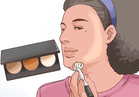 Use a light hand with bronzer or contour products. Bronzer and contour products can add warmth and definition to your face. If you use too much, though, you’ll wind up looking muddy. To keep it on natural, use a small amount on a small, fluffy brush and apply it softly along your forehead and temples, beneath your cheekbones, and along your jaw on each side of your face in a “3” or “E” shape for subtle definition. Blend your bronzer or contour product well so you don’t wind up with stark stripes on your face.