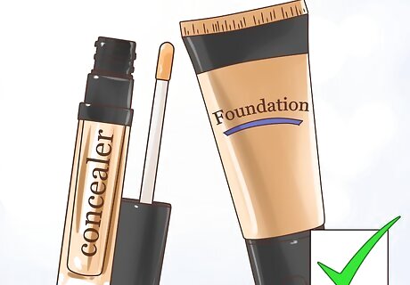 Use a concealer that matches your foundation exactly for discolorations. If you use a concealer that's lighter than your foundation on acne, scars, age spots, and other discolorations, you'll only wind up drawing attention to the areas you're trying to conceal. Instead, apply a concealer that matches your foundation exactly so they blend seamlessly together. For blending concealer in on the face, a brush or sponge typically works best. They help the product melt into the skin without removing too much of the pigment so your dark spots remain hidden.