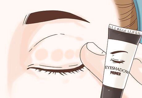 Apply an eyeshadow primer. If you want to keep your eyeshadow from fading and creasing, starting with a shadow primer is a must. Dot a small amount of the primer on your lids, and gently blend it in with your finger before applying any eyeshadow. If you don't have an eyeshadow primer, you can substitute concealer. Use it just as you would a primer.