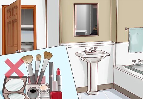 Keep your makeup out of the bathroom. The bathroom usually has a large mirror, so it probably seems like the ideal spot to put on and store your makeup. However, the heat and humidity -- not to mention germs -- in the bathroom can cause your makeup to spoil more quickly. Instead, store it in a cool, dry room of the house, such as the bedroom.