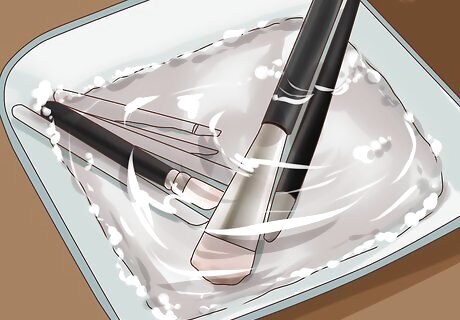 Wash your makeup brushes regularly. It can be a pain to keep your makeup brushes clean, but using dirty brushes can lead to dirt, oil, and bacteria being spread over your face each time you use them. You should deep clean with brush shampoo or another cleanser once a week, and use a daily brush cleaner to spot clean your brushes before each use. You can purchase brush shampoo and daily brush cleaner at beauty supply stores. However, you can also make your own.