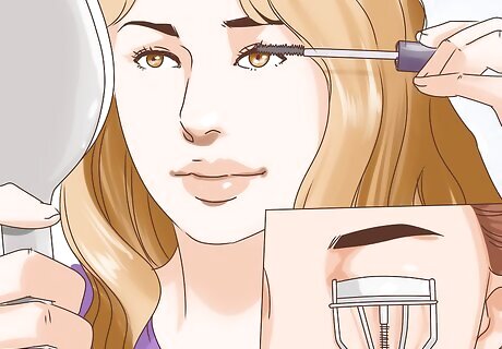 Curl your lashes before applying mascara. Curled lashes can open up your eyes and make them appear larger. However, it’s important to curl your lashes with a lash curler before you put on your mascara. If your lashes are wet when you curl them, you can create a kink in them or even pull some lashes out. If you’re not comfortable using a lash curler at all, you can curl your lashes without one. In that case, apply your mascara first and then push your lashes back to create a curl. Hold them in place for several seconds to lock the curl in.