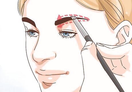 Lightly fill in your brows. Dark, fully drawn on eyebrows never look quite right. To avoid looking too harsh, use a product that is the same color or a shade lighter than your brows. Instead of drawing your brow on in one line, use a series of small strokes for a soft, natural look. Using a powder to fill in your brows usually offers the softest, most natural look. When you’re finished applying your brow product, brush through them with a clean brow brush or spoolie to blend the color.