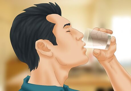 Stay hydrated. Your muscles are more prone to injury if you are dehydrated. To train safely and effectively, you must hydrate properly. Make sure to drink water before, during, and after your workout. Water is important because it regulates your body temperature, lubricates joints, and transports nutrients throughout your body. Drink 7-10 ounces of water during every 10-20 minutes of exercise. Follow your workout with at least another 8 ounces. You should drink about 20 ounces of water in the 2-3 hours prior to your workout. You can also drink sports drinks, but make sure to still get enough plain water.