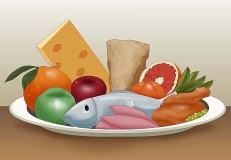 Get the right fuel. Eating right is always important, but it is especially critical when you are training. Make sure that you are giving your body enough fuel. Plan healthy meals to help you keep your body healthy and reduce injury and illness. A good diet can help you meet your fitness goals more effectively and lessen the risk of feeling the need to over-train. Eat breakfast. If you workout in the morning, get up early enough to eat at least one hour before your training session. Make sure to include healthy carbohydrates in your breakfast. Good foods to eat are whole grain breads and cereals, bananas, or a waffle. Eat a healthy snack if your workout is several hours after a meal. Reach for an energy bar or a peanut butter sandwich. Your muscles need food after a workout so that they can repair themselves. Good post-workout meals are pasta with turkey meatballs or chicken with brown rice.