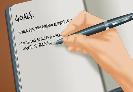 Set clear goals for a safe program. By setting up an effective training schedule, you can workout responsibly and effectively. Making a schedule and sticking to it will help you to avoid over-training. Before you create a schedule, you need to clarify your fitness goals. Make sure to include "Train safely and responsibly" as a goal. Write down your goals. Be as specific as possible when you list what you want to achieve. For example, you could write, "I will run the Chicago Marathon in 2017." Then you can make smaller, more specific goals that relate to your overall objective. Make daily and weekly goals. For instance, one of your goals could be "I will log 30 miles a week during my first month of training." You can also make general fitness goals. For example, you could write, "I want to lose 5 lbs during my first month of training." Just make sure to make sure that all of your goals allow flexibility, so that you avoid over-training.
