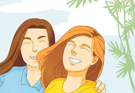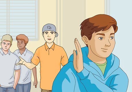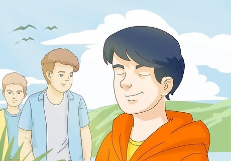 Enjoy the company of your friends. Whether you’re in a social setting, at school, or at work, surrounding yourself with people you get along with is a great way feel more comfortable. If you are often in a situation where you are near rude people or people you don’t want to talk to, enlist your friends to come to your defense. Tell your friends about the person(s) that bother you. Explain why in a calm manner and ask your friends to provide a barrier if this person approaches you.