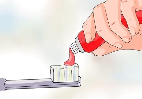 Use a pea sized amount of toothpaste. Make sure you are using a fluoride toothpaste approved by the American Dental Association. Fluoride helps to strengthen tooth enamel and prevent tooth decay. Small children can't have as much fluoride as adults. Talk to your dentist about an appropriate amount of fluoride toothpaste to use on your child's toothbrush. You will want your child to get the cavity fighting benefits of fluoride without getting too much of it.