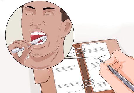 Set up a brushing schedule. Ideally you should brush your teeth after every meal, but you should try to do so at least twice a day: once after breakfast and once before bed. Make this part of your routine each morning and before bed. If you incorporate tooth brushing into your regular routine it will be easy to remember to do it. Proper tooth brushing only takes a few minutes, so even very busy people can find the time.