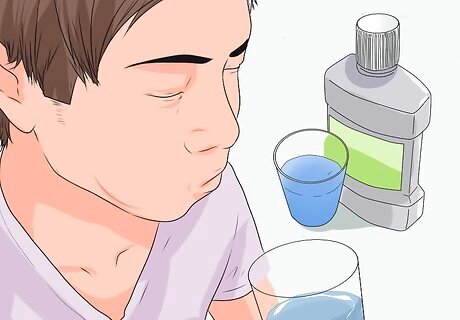 Rinse your mouth with water or mouthwash. Mouthwash can be used to help prevent tooth decay and cavities, reduce plaque buildup, and reduce your likelihood of diseases such as gingivitis. Look for a mouthwash containing fluoride to help prevent or reduce tooth decay. Mouthwashes that have the American Dental Association Seal of Acceptance have been tested for safety and effectiveness, so always choose a product that has this seal. Mouthwash cannot be used in place of regular brushing and flossing. If you find you cannot brush your teeth after a meal, it is a good idea to rinse with mouthwash to kill bacteria and prevent plaque. Mouthwashes that contain alcohol may dry out your mouth, which could actually promote further bacterial growth. Look for a fluoridated, alcohol-free mouthwash.