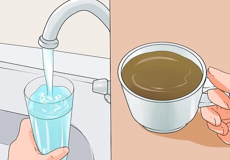 Drink tap water and green/black teas. Tap water is fortified with fluoride in most countries. Anything you make with tap water that is fluoridated will help to strengthen your enamel. Water can help to wash away food particles. Green and black teas contain properties that prevent plaque buildup. These teas can also help to reduce inflammation and prevent gum disease. Be sure not to sweeten your teas with sugar.