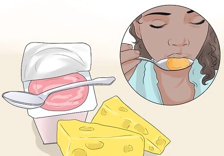 Eat dairy products such as milk, cheese, and yogurt. These contain several essential nutrients for healthy teeth. Calcium, phosphates, and vitamin D in dairy are very important for healthy teeth as your teeth are primarily made up of calcium. Calcium will not only help to strengthen your teeth, but can also stick to them and prevent acid from damaging your enamel. If you are lactose intolerant, there are many calcium and vitamin enriched foods available such as soy products.