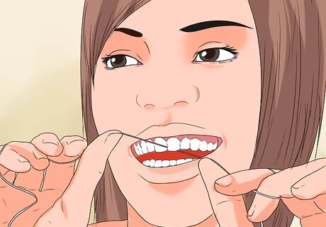Floss your teeth at least once a day. Additionally, you should floss after eating a meal or snack that can easily get caught in your teeth such as popcorn or corn on the cob. Even if you brush regularly, it is imperative to floss as well. Flossing will remove food particles from between your teeth and under the gums. These are areas where a toothbrush cannot reach. If you do not floss, food particles and sugars caught between your teeth will attract bacteria and promote plaque buildup and can cause cavities.