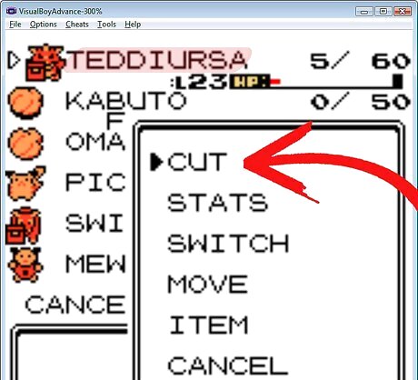 Select a Pokémon that knows the HM Cut and use the move in the Pokémon menu. Three squares of grass directly in front of you should disappear.