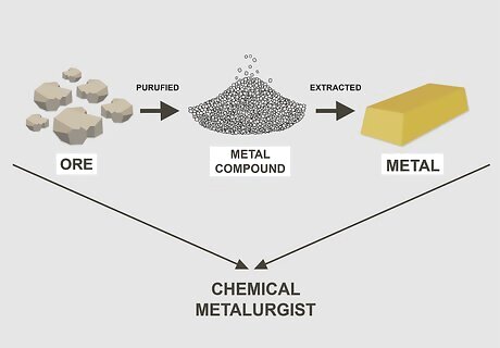 Be a chemical metallurgist if you want to deal with extracting metal from ore. Chemical metallurgists develop and monitor processes for extracting and manufacturing usable metals. They also study metal corrosion and fatigue. To become a chemical metallurgist, you should have a strong interest in chemistry. As a chemical metallurgist, you might work on developing ways to make metals stronger, improving extraction and manufacturing processes, creating recycling strategies, and testing metals to make sure they meet safety and quality standards.