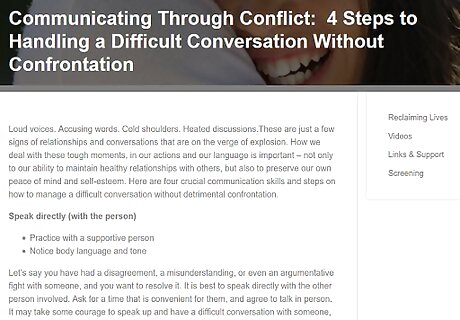 Use "I" statements. Instead of blaming or attacking the other person, frame your opinion as an “I” statement instead of a “you” statement. These can defuse tension. It makes it seem as though you are inviting discussion instead of provoking an argument. For example, instead of saying, “you are completely wrong about this. You have no idea what you’re talking about,” you might say, “I disagree. I think that there are other ways of looking at the issue.”