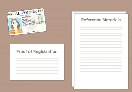 Bring proof of registration, picture ID, and reference materials to the exam. On the day of the exam, arrive at the testing site on time and bring all of the necessary documents with you to present to the proctors. You’ll need your registration receipt, a photo ID, and your reference texts so you can use them during the exam. Be sure to bring your own pencils and scrap paper as there won’t be any provided for you.