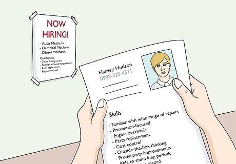 Apply to jobs that match your qualifications. To increase your chances of getting a job, complete applications for every available position. Fill out applications for jobs that you’re qualified to do. Additionally, send your resume and cover letter to the employer. If you haven't completed a training program, you'll likely only be qualified for trainee positions. Typically, repair shops only offer trainee positions if they're having trouble finding qualified mechanics.