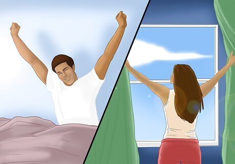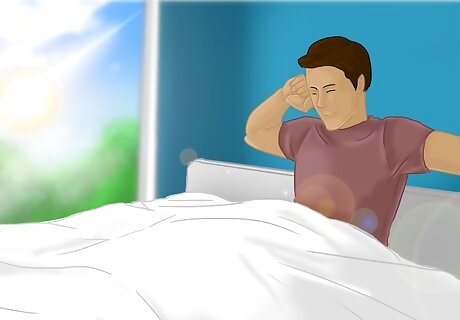 Wake up with the sun. You can also set a timer so bright lights come on in your room in the morning at the same time every day. If you are trying to wake up earlier in the morning, adjust your timer so bright lights come on earlier in your room. Sunlight helps your body's internal clock to reset itself each day. This will also help you avoid oversleeping in the morning, as the sun will cause you to wake up. Sleep experts recommend exposure to an hour of morning sunlight for people who have trouble falling asleep.