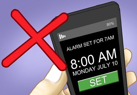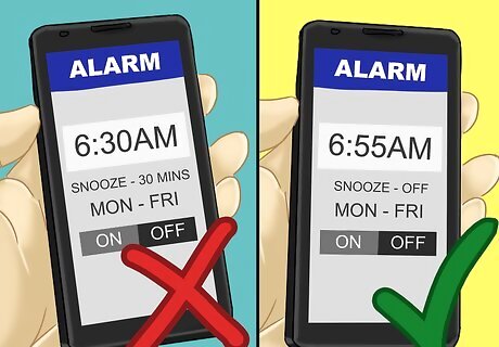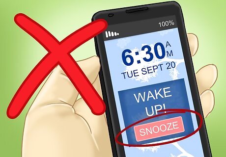 Avoid hitting the snooze button on your alarm. Though you may be tempted to sleep for just five more minutes in the morning for some extra sleep, hitting the “snooze” button on your alarm will in fact make you more tired. When you hit snooze, your brain goes even deeper into your sleep cycle. By the time you hit “snooze” several more times, and finally wake up, you will feel groggy and even more tired than if you got up with your alarm. If possible, get an alarm without a snooze button. Or disable the snooze option on your existing alarm.