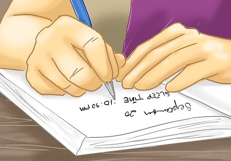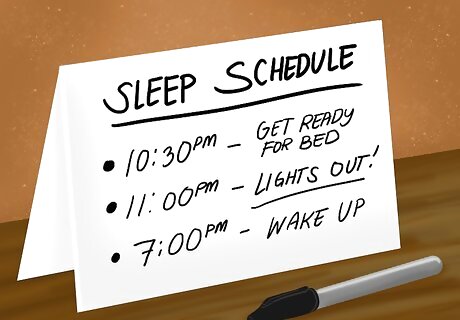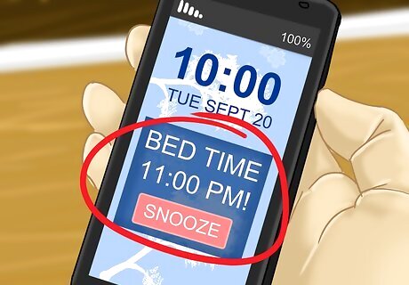 Set an alarm to remind you it's time for bed. If you tend to get wrapped up in evening activities or conversations and forget to stick to your sleep schedule, you can set an alarm on your phone or computer to alert you 1 hour or 30 minutes before bedtime. If you prefer to shut down all electronics a few hours before bed, you can use an alarm on your watch or ask someone you live with to remind you of bedtime 1 hour before it's time.