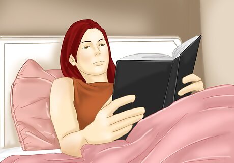 Do a relaxing activity before bed. This could be a warm bath, reading a good book, or having a quiet conversation with your partner. Doing a restful activity will help to trigger your brain to start relaxing and shutting down. If you find yourself tossing and turning in bed in the dark, don't lie there and stare up at the ceiling. Instead, do a relaxing activity in bed to calm down and get your mind off your inability to sleep. Doing a restful activity may in fact end up causing you to fall asleep.