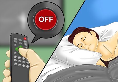Turn off all electronics and distractions a few hours before bed. Switch off your television, smartphone, iPad, and computer or keep all electronics out of your bedroom completely. The type of light these screens emit can stimulate your brain, suppress the production of melatonin (which helps you sleep), and interfere with your body's internal clock. Another option is to shut down your computer on a schedule. This will automatically sleep your machine and prevent you from working on your computer too late or too close to your bedtime. There are sleep features on both PCs and Macs that you can activate. As well, if you want your computer to be ready to go in the morning, once you wake up, you can schedule a startup time too.
