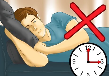 Don't nap after 3 pm. The best time for a nap is usually mid afternoon, before 3 pm. This is the time of day you will likely experience afternoon sleepiness or a lower level of alertness. Naps taken before 3 pm should not interfere with your nighttime sleep. Keep your naps short, between 10 to 30 minutes. This will prevent sleep inertia, which is when you feel groggy and disoriented after a nap that goes on for longer than 30 minutes. This will also prevent you from oversleeping the following morning, as naps under 30 minutes should not interfere with your sleep schedule.