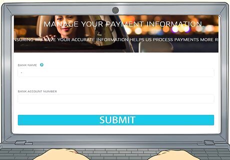 Enter your direct deposit information. In order to receive your Uber payments directly to your account, you can enter your checking account information for direct deposit. Visit vault.uber.com and log in with your Uber account. Enter your banking account number and routing number, which you can find at the bottom of a check.